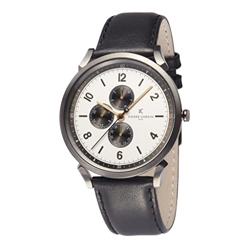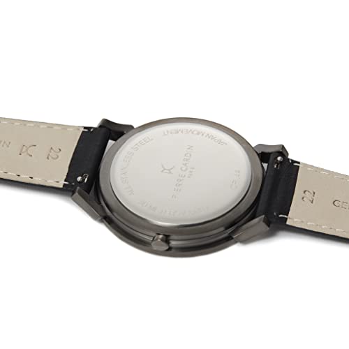 Pierre Cardin - ساعة للرجال من بيير كاردان، مزودة بسوار جلد لون اسود, أسود، انالوج