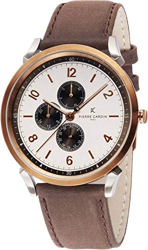 Pierre Cardin - ساعة يد للرجال من بيير كاردان بسوار جلد بني اللون, متعدد الألوان، انالوج