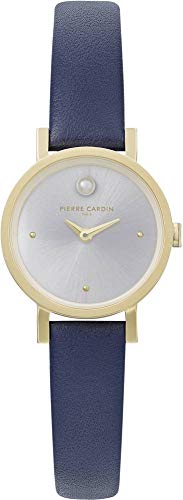 Pierre Cardin - ساعة يد للنساء مع سوار ساعة من الجلد بلون ازرق من بيير كاردان, ذهبي