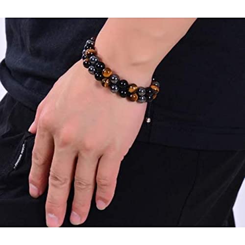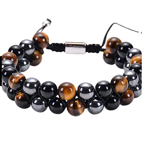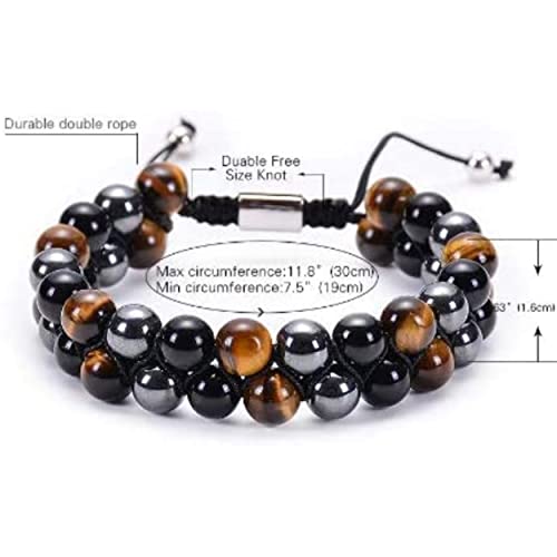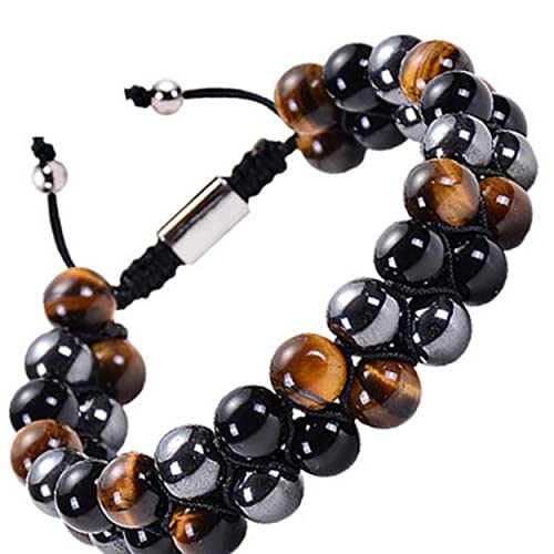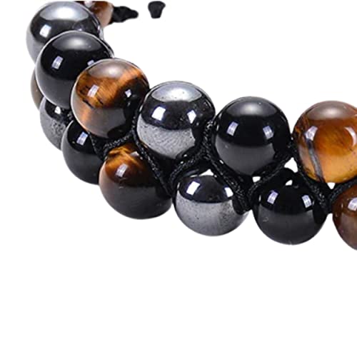 PIERRETOILES - اسورة مضفرة بحماية ثلاثية من حجر عين النمر وزجاج بركاني وحجر الدم بيريتوليس هدية مجوهرات للرجال والنساء عدد قطعة واحدة كريم 1 Unité Lot de