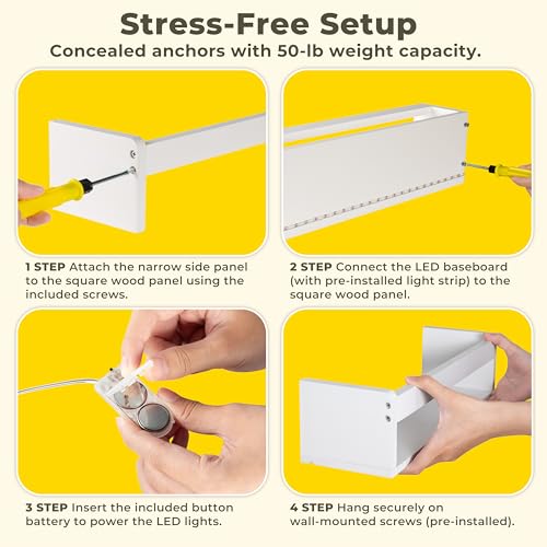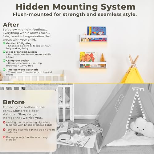 - إضاءة LED ناعمة مدمجة: يتميز كل رف بإضاءة LED مدمجة ناعمة التوهج تضيف إضاءة رقيقة إلى أي غرفة. مثالي للقراءة وقت النوم أو الإضاءة المحيطة، تصميم LED يلغي الحاجة إلى مصابيح إضافية. توفر هذه الإضاءة المدمجة جوًا مريحًا ومهدئًا دون إضافة فوضى أو أسلاك إضافية.