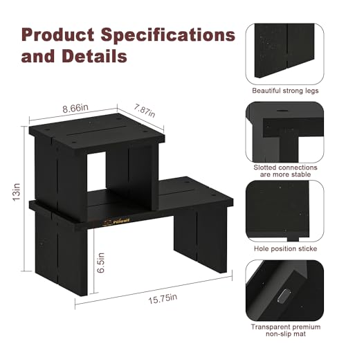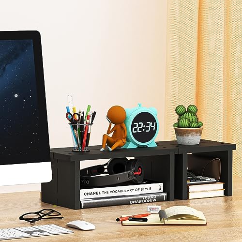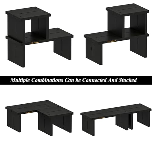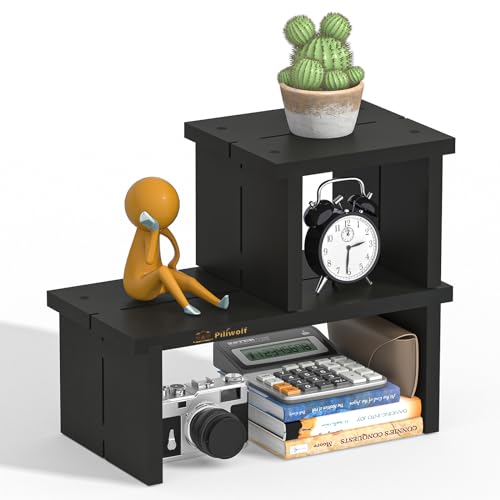 PILIWOLF - رف مكتب من بيليوولف منظم رف مكتب صغير للمكتب - رف سطح مكتب مستقل قابل للتكديس من الخيزران بطبقتين - منظم طاولة المطبخ والحمام رف تخزين رف عرض