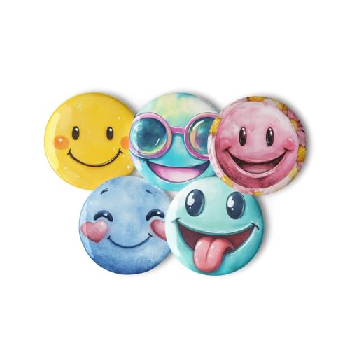 Generic - مجموعة ازرار دبوس باك - 5 قطع 2.3 انش مجموعة دبابيس وجه مبتسم رموز تعبيرية - بروش بتصميم الوان مائية عصرية للحقائب والملابس والشنط وديكورات المدرسة والكلية