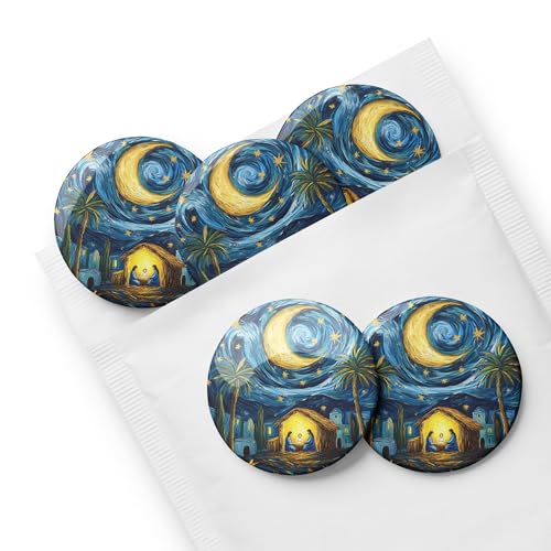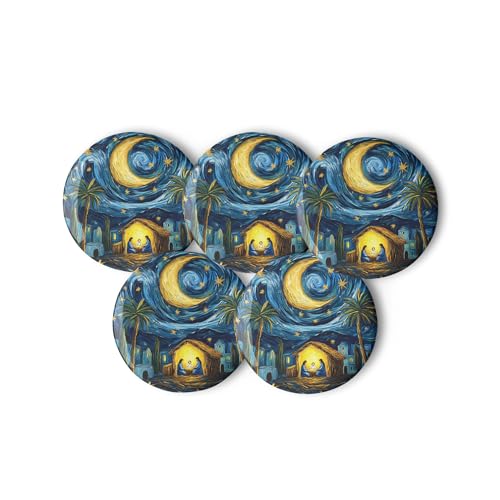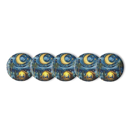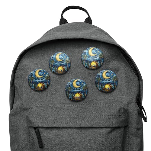Generic - Pinback Buttons Set - طقم دبابيس (بوتن) مشهد ليلي تراثي فني، 5 قطع، مقاس 5.8 سم - بروش زينة للشنط والملابس بتصميم الهلال والنخيل بأسلوب لوحة ليلة النجوم