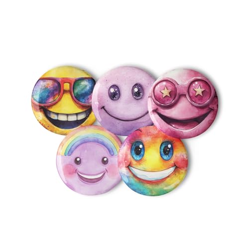 Generic - مجموعة ازرار دبوس - 5 قطع من دبابيس رموز تعبيرية على شكل وجه مبتسم - 5.8 سم - بروش عصري للشنط المدرسية والملابس بتصميمات كرتونية مرحة