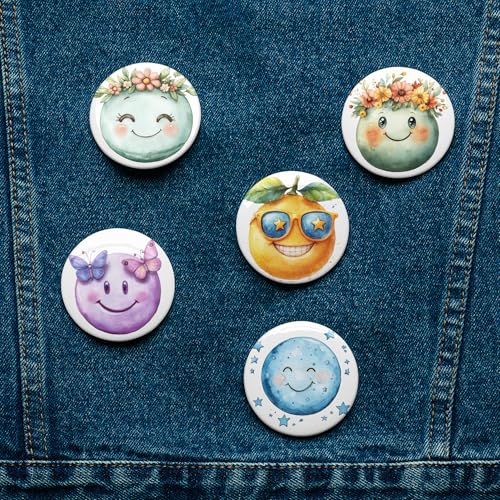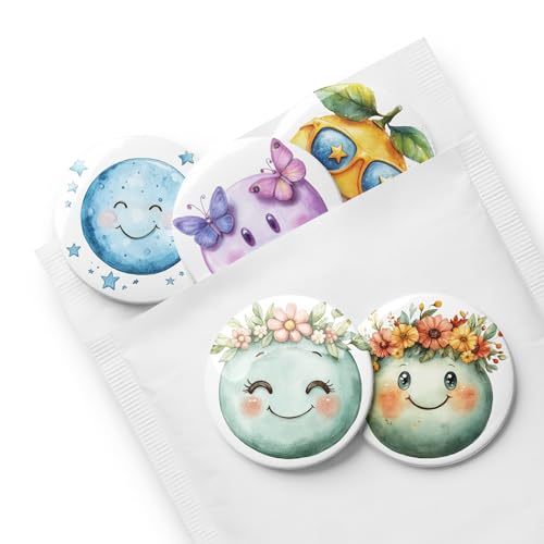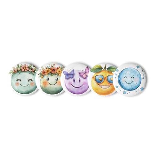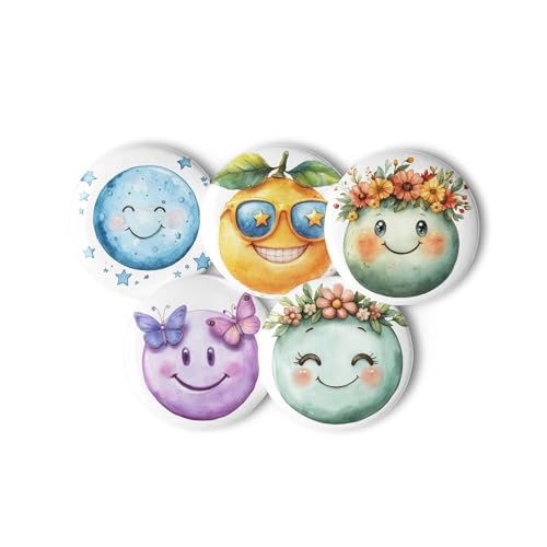 Generic - مجموعة ازرار دبوس باك - مجموعة دبابيس وجه مبتسم مستوحاة من الطبيعة من 5 قطع، 5.8 سم - بروش ملون على شكل قمر وزهرة وفراشة للحقائب والملابس