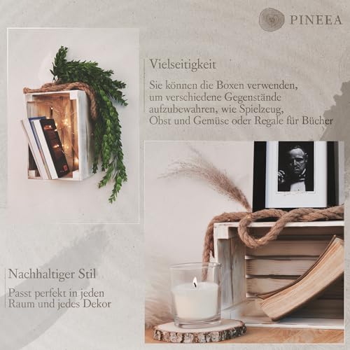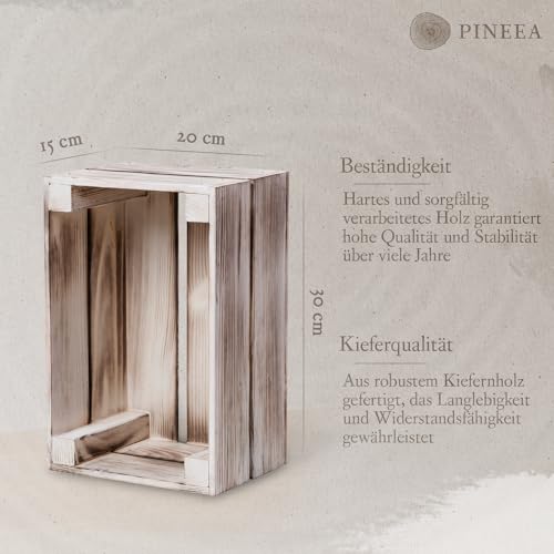 PINEEA - صندوق صغير من الخشب بتصميم عتيق مزخرف بينيا لزجاجات المشروبات والفواكه لون أسود وأبيض مقاس 30 × 20 15 سم