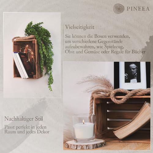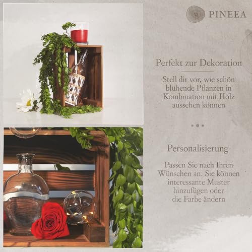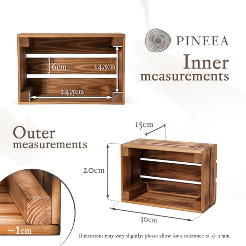PINEEA - صندوق خشبي صغير- صناديق عصائر خشبية - صناديق خشبية مزخرفة - صندوق عصير خشبي - صندوق فاكهة عتيق - صندوق صندوق خشبي محروق، من بينيا، 30 × 20 × 15 سم