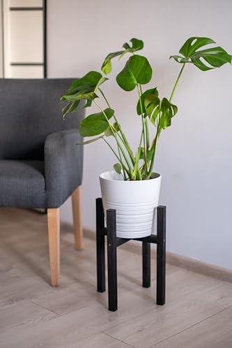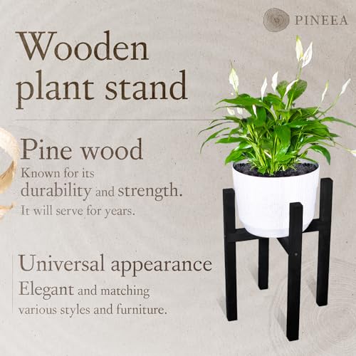 PINEEA - حامل زهور خشبي من بينيا - حامل نباتات قوي 29 × 29 × 38 سم - حامل نباتات حديث للاستخدام الداخلي