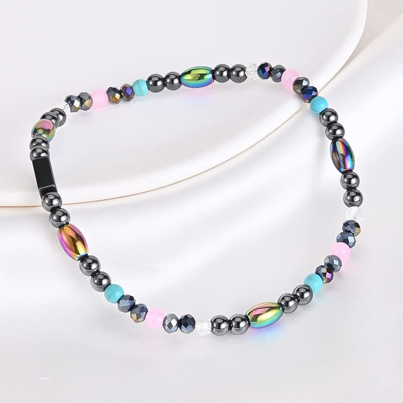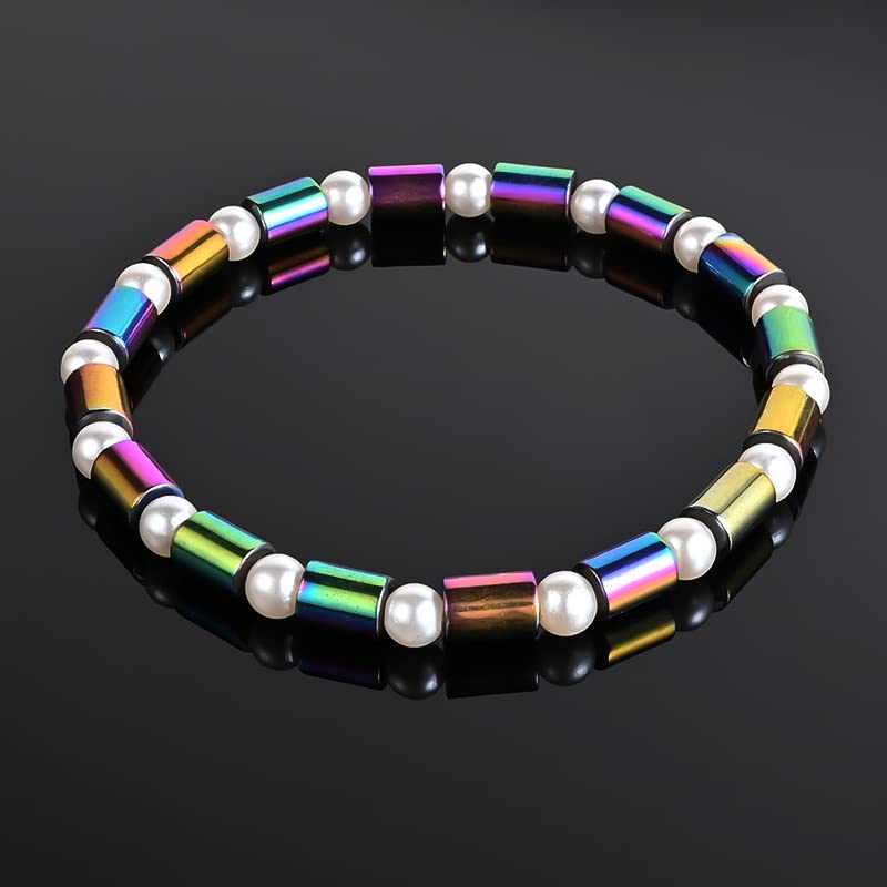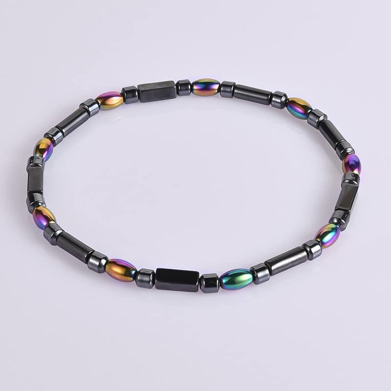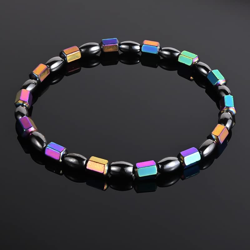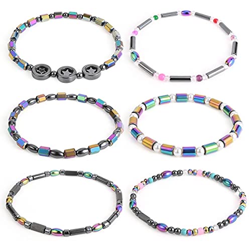 Pingyongchang - 6 قطع من اساور الهيماتايت المغناطيسية للرجال والنساء سوار مطاطي الخرز المغناطيسي لتخفيف القلق علاجي مغناطيسي مجوهرات للجنسين حجر معدني هيماتايت