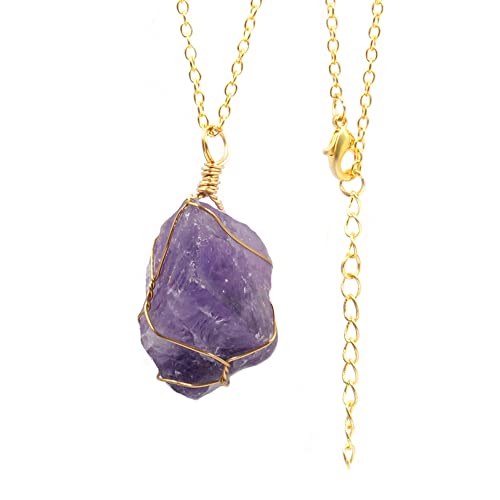 Pingyongchang - بينج يونج شانج قلادة علاجية من الاحجار الخام الطبيعية غير المنتظمة ملفوفة بسلك شاكرا كريستال ملفوف كوارتز احجار كريمة مجوهرات للنساء والفتيات اكسسوارات هدايا معدن