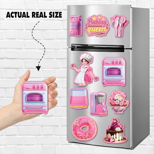 Generic - مغناطيس ثلاجة قوي للزينة، ملصقات مغناطيسية مزخرفة من بينك اديكت، لون وردي، مجموعة من 10 قطع