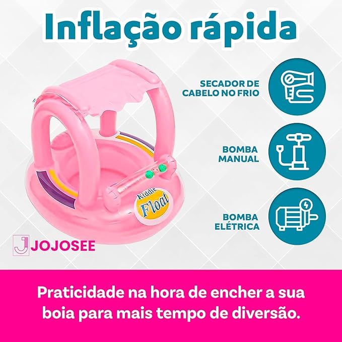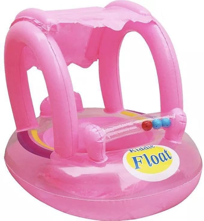 Generic - عوامة على شكل قارب محمولة قابلة للتعديل والنفخ بمظلة شمسية للأطفال، لون وردي