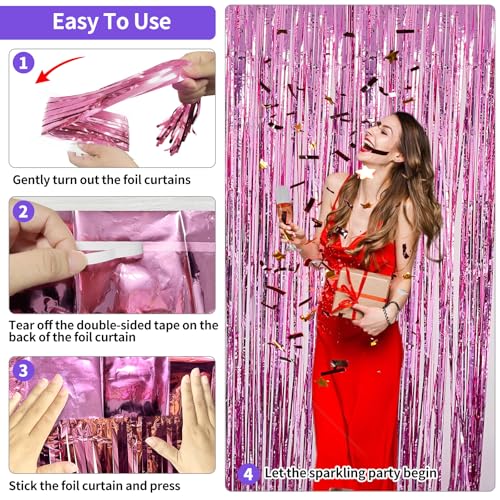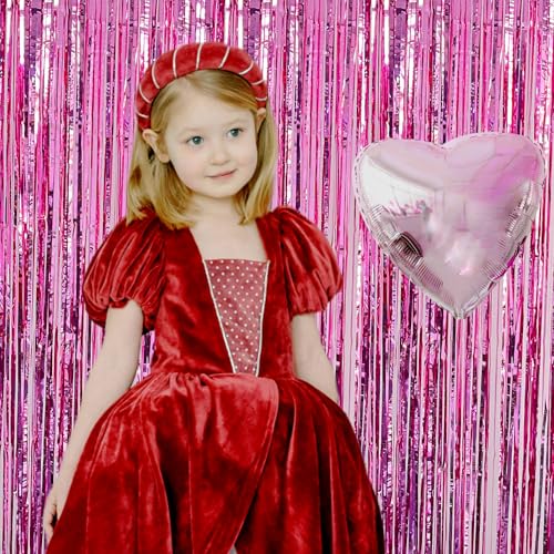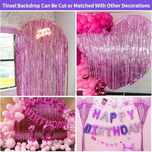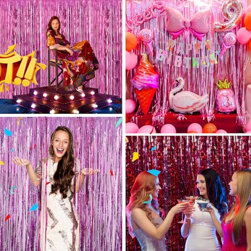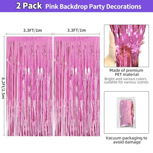JINSUI - زينة حفلات أعياد الميلاد للبنات، ستائر بشراشيب من الرقائق المعدنية، خلفية لامعة لتزيين الأبواب وتعليق حفلات تخرج باربي وتوديع العزوبية، عبوة من 2 قطع، وردي، 1 متر × 2.86 متر