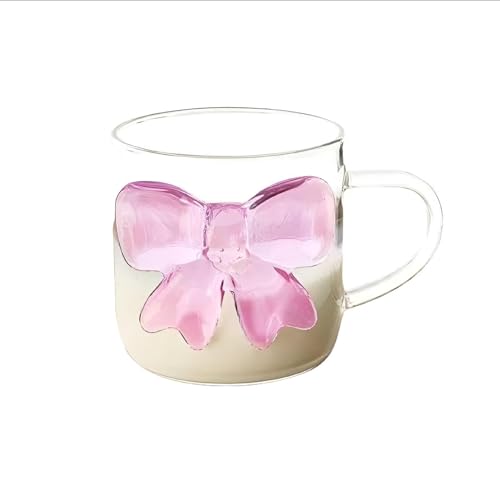 Generic - مج زجاج أنيق مقاوم للحرارة وبتصميم مقبض على شكل فيونكة، مناسب لحفلات الزفاف وعروض الزواج واحتفالات الذكرى، مقاس 400 مل، لون وردي شفاف