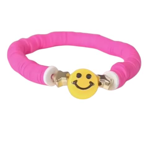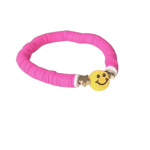 Shatoora - Pink Clay Disc Smiley Face Bracelet, Pink