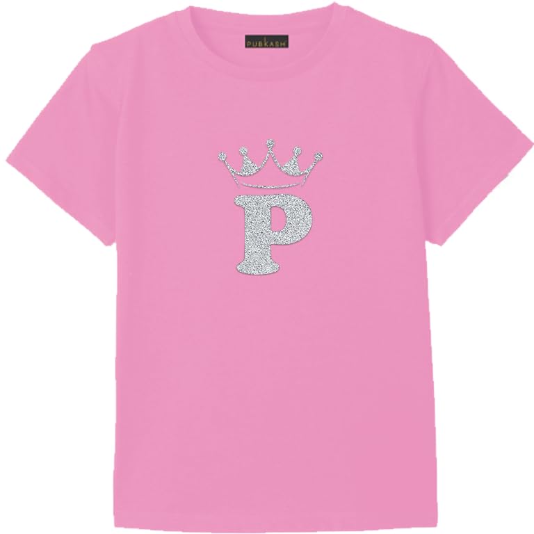 Generic - تيشرت كاجوال من القطن بلون بينك مزين بحروف تاج (P) مقاس (S)