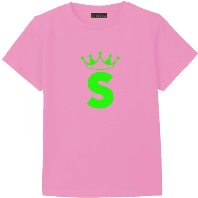 Generic - تيشرت كاجوال من القطن بلون بينك مزين بحروف تاج (S) مقاس (L)