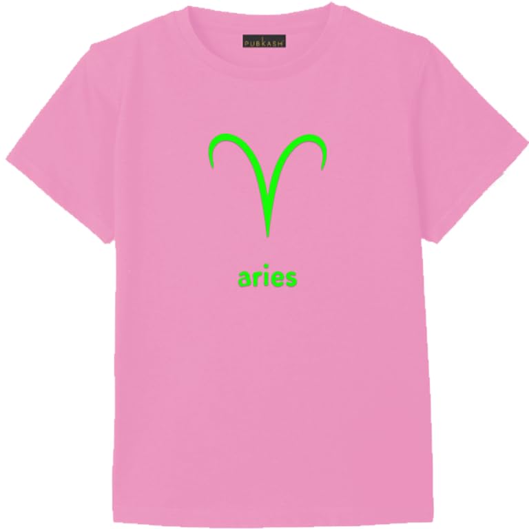 Generic - تي شيرت قطني بينك مع شعار برج الحمل مقاس (XL)