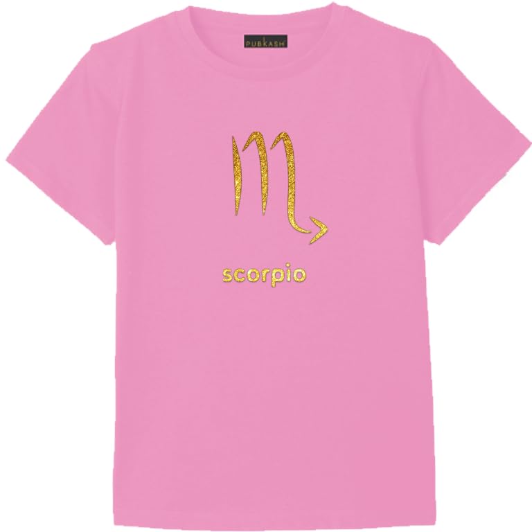 Generic - تيشرت قطن بينك مع شعار برج العقرب مقاس (S)