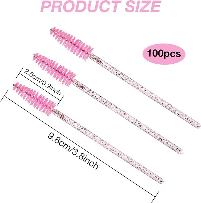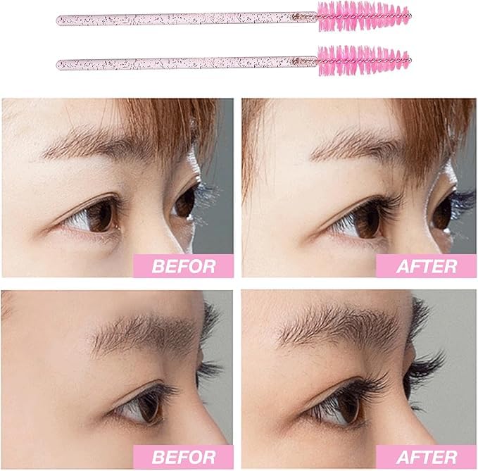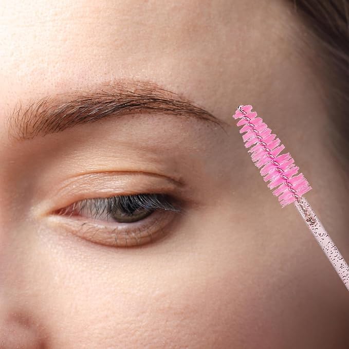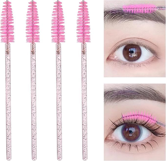 Generic - فرش ماسكارا للاستعمال مرة واحدة لون بينك، فرش رموش بمقبض كريستالي، ملحقات مشط لرفع الرموش والحواجب