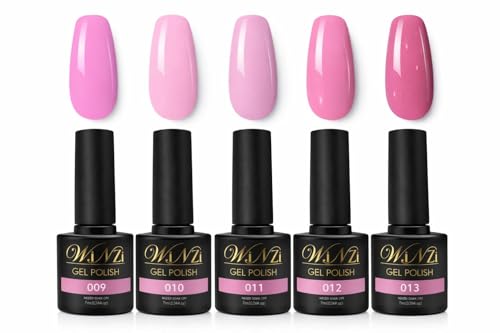 WINZI - مجموعة طلاء اظافر جل بينك ناعمة الى عميقة، جل تنقع بالاشعة فوق البنفسجية LED، تغطية سلسة بلمسة نهائية لامعة، سهلة الاستخدام للصالونات والاستخدام المنزلي، 7 مل (درجات 009-013)