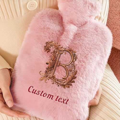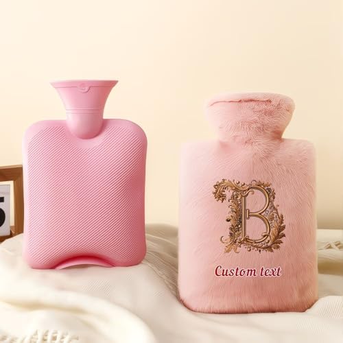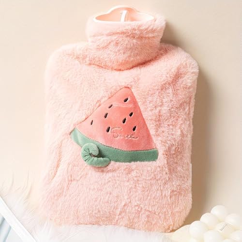 Generic - قربة ماء ساخن وردية مع غطاء فرو، تصميم مخصص ، غطاء قطيفة ناعم