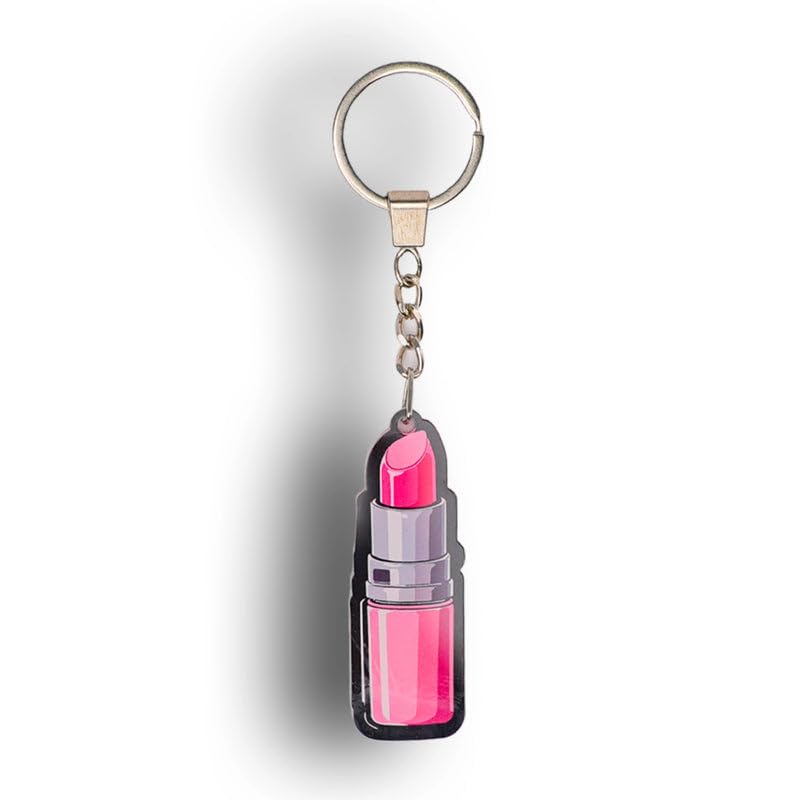 Generic - ميدالية مفاتيح اكريليك على شكل أحمر شفاه وردي بطول 10 سم مزودة بسلسلة معدنية وإغلاق حلقة زنبركية بتصميم زخرفي أنيق