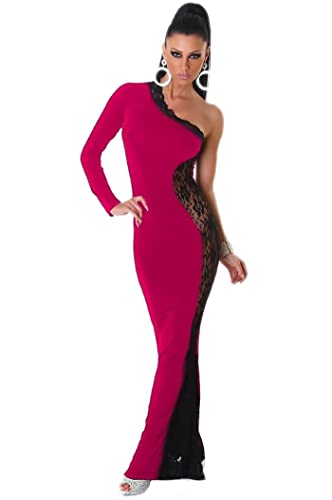 Generic - لانجيري طويل بكم واحد ومزين بالدانتيل من الجانب، بينك