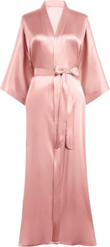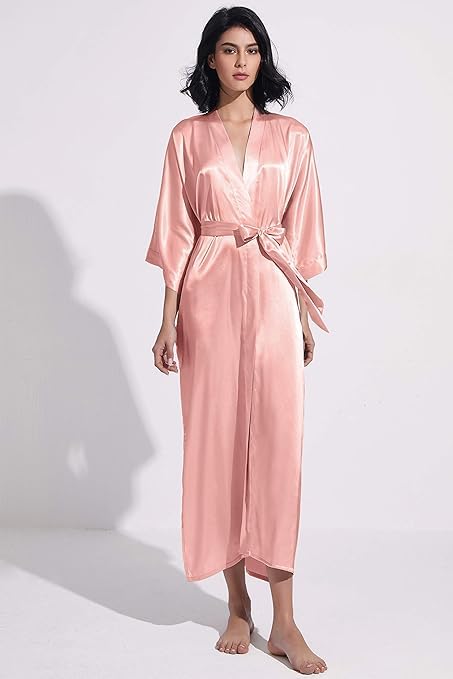 Generic - روب لانجري ساتان طويل باكمام واسعة للنساء باللون البينك وان سايز 50:90 كيلوجرام