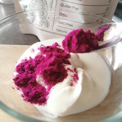 - XL 500 جم بيتايا مجففة كلون طبيعي للطعم الاستوائي والنكهة واللون. طريقة بسيطة وعضوية لإضفاء اللون على عصائر السموذي، تشبه مسحوق سبيرولينا الأزرق للون. الموز مع مسحوق الفراولة أفضل لمذاق أحلى وألوان حمراء. تناول الأطعمة المغذية الحلوة الصحية.