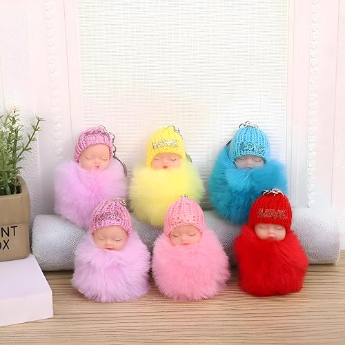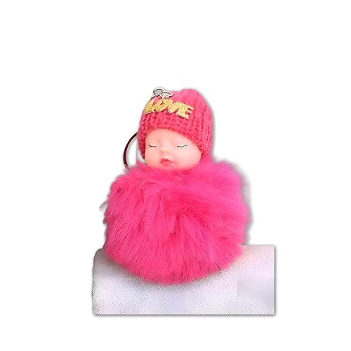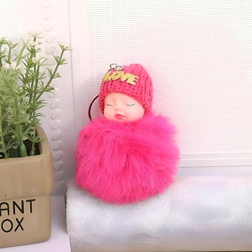Generic - دلاية بوم بوم بينك - سلسلة مفاتيح لدمية الطفل النائمة المنفوشة المبهجة مزينة بكرات بوم بوم من الفرو الصناعي الوردي وقبعة صغيرة محبوكة، مثالية للحقائب وحقائب الظهر او كقلادة (موديل 2 زهري داكن)