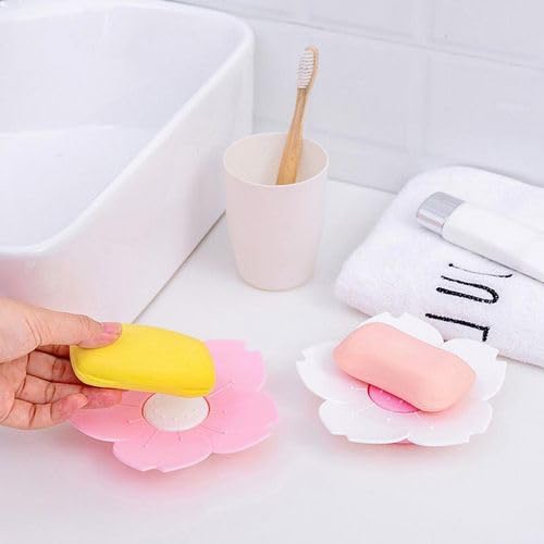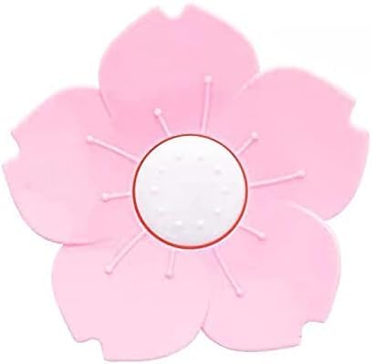 Home House House - صبانة بلون وردي مع حامل صابون ذاتية التصريف متعدد العناصر، حامل صابون استحمام على شكل وردة بلون وردي