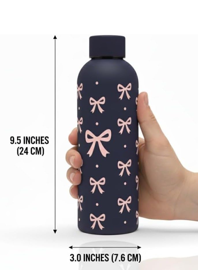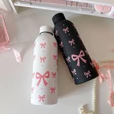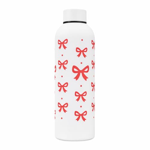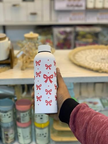 - تصميم جذاب: زجاجة مياه بيضاء مزينة بنمط أقواس حمراء أنيقة مع نقاط صغيرة، مثالية للاستخدام اليومي والهدايا