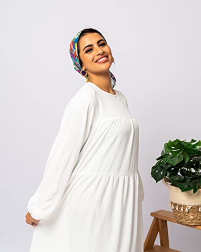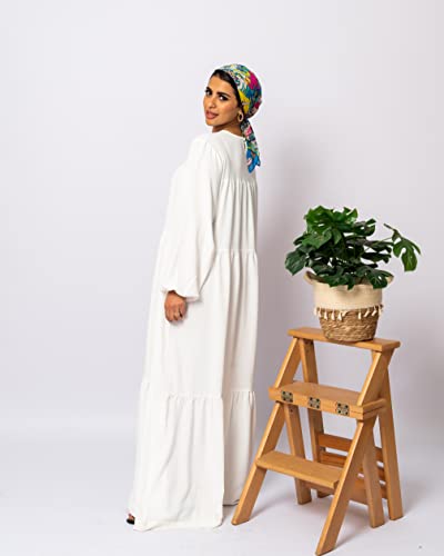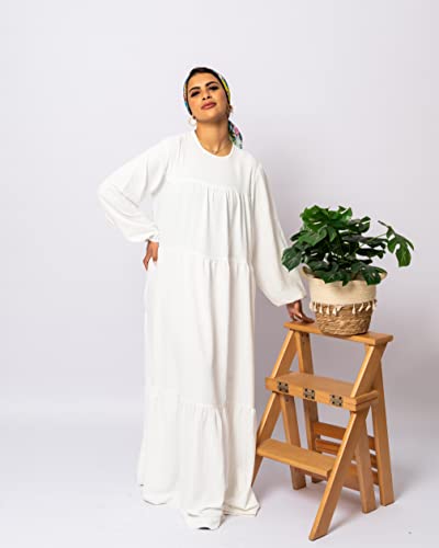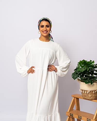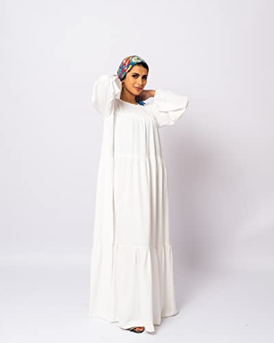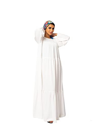 Pinky - فستان صيفي للمحجبات من القطن الناعم المرن باكمام طويلة وطبقات واسعة للنساء بينكي