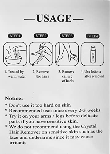 - 【بدون ألم وسهلة الاستخدام】بسيطة ومريحة في الاستخدام، قولي وداعًا لطرق إزالة الشعر التقليدية، فهذه الأداة مناسبة لجميع أنواع البشرة. فقط افركها على البشرة بشكل دائري، سيظهر مزيل الشعر الكريستالي بشرتك الناعمة من جديد بعد أن تخلصك من الشعر الداكن.