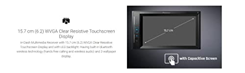 PIONEER - ستيريو سيارة DMH-A245BT مقاس 15.7 سم (6.2) WVGA شاشة لمس شفافة BT/USB/AUX/راديو، ويب لينك، أجهزة فيديو بجودة فائقة كاملة بمنفذ USB، معادل 13 نطاق، مخرج مسبق 3 (2 فولت)، موسفت 50 وات × 4 وكاميرا خلفية