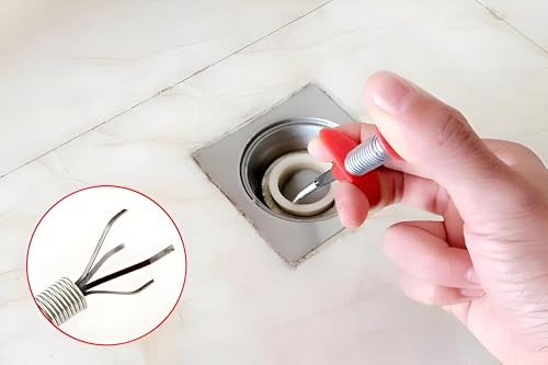 Generic - أداة تنظيف أنابيب، خطاف تصريف حلزوني مرن مقاس 2 م مع شبكة مضادة للانسداد، مصمم لفتح أنابيب الحمام والمطبخ بكفاءة، مقبض أحمر