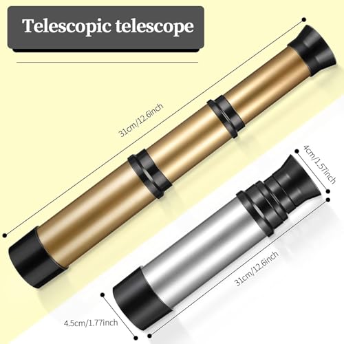 - تصميم قابل للطي والتمدد: يمتد التلسكوب إلى طول كبير، مما يجعل من السهل حمله واستخدامه في المغامرات والألعاب التظاهرية.