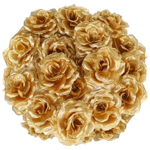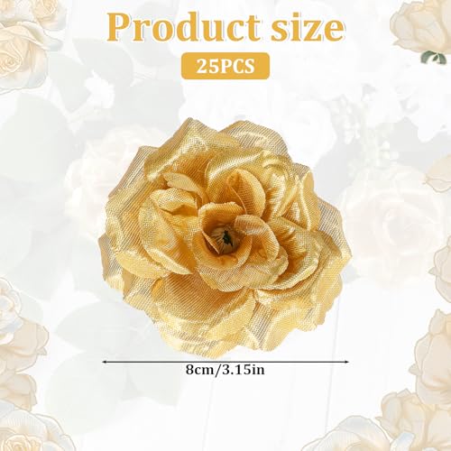 Piriuuo - ورود ذهبية صناعية برؤوس زهور مقاس 8 سم مناسبة لتزيين طاولات الحرف اليدوية والديكورات، ورود قماشية وحريرية أنيقة مناسبة للأعمال اليدوية وحفلات الزفاف من بيريو، عبوة من 25 قطعة