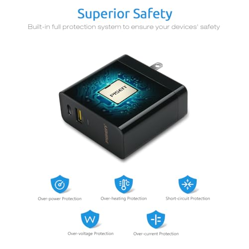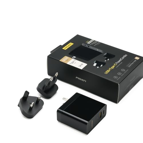 Pisen - شاحن من بايسن بتقنية USB-C وLightning، متوافق مع الهواتف الذكية والتابلت واللابتوب والايربودز، بمنفذين
