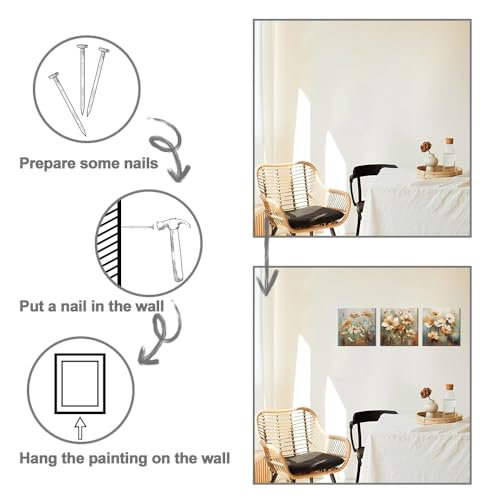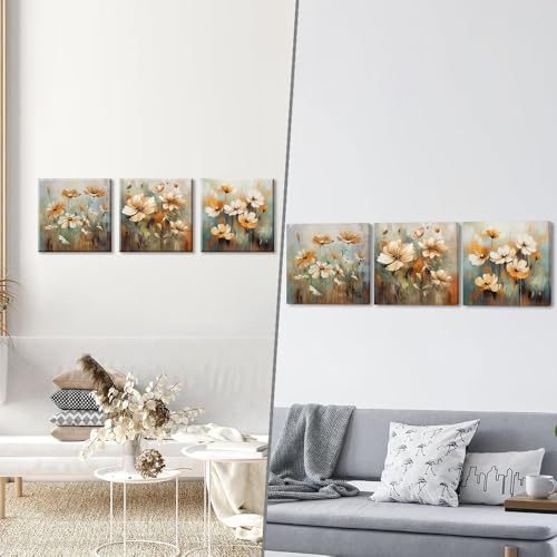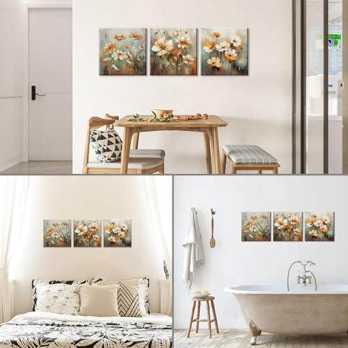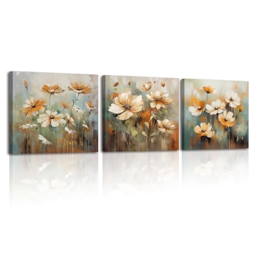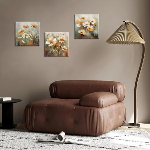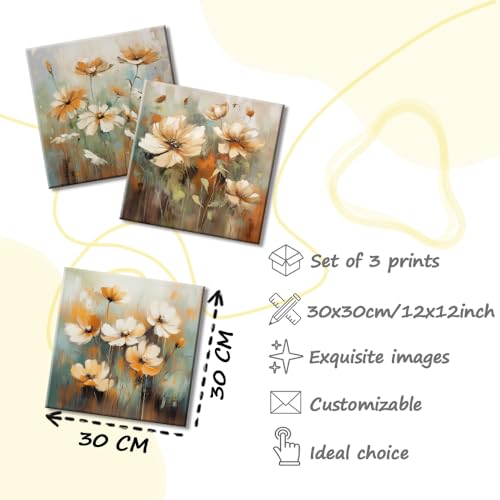 Piy Painting - باي باينتينغ 3 قطع من الزهور التجريدية الحديثة لغرفة المعيشة والنباتات البرية صور اللوحة اللوحة القماشية صور جدارية ملونة مطبوعة على قماش غرفة النوم مع اطار 30 × 30 سم