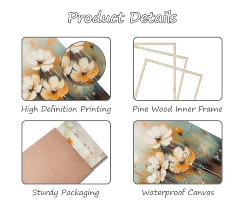 - أقمشة عالية الجودة: هذه المطبوعات القماشية الجدارية مصنوعة من قماش عالي الجودة، طباعة عالية الدقة، مقاومة للماء والرطوبة، ألوان زاهية وتدوم طويلاً. يمكن استخدامها في الحمام والمطبخ؛ يمكن استخدام الألوان أيضًا في الأماكن المغلقة الخفيفة. الإطار الخشبي مصنوع من خشب قوي وخفيف الوزن بحرفية متقنة، والقماش سميك وممتد بنسيج ممتاز، واللوحة مسطحة ومتينة.