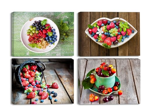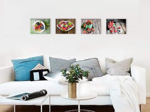 Piy Painting - لوحة قماشية بتصميم فواكه طازجة على القماش بالوان زاهية عصرية مع اطار لديكور الحائط مقاومة للماء للمطعم والمنزل هدية مقاس 30×40 سم من 4 قطع باي باينتينغ، متعدد الألوان