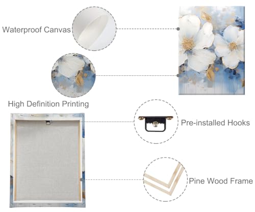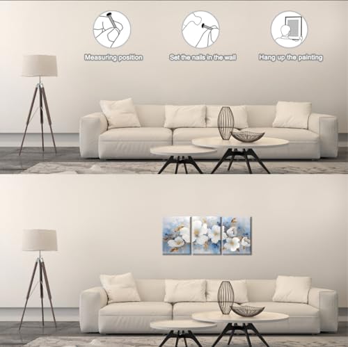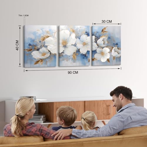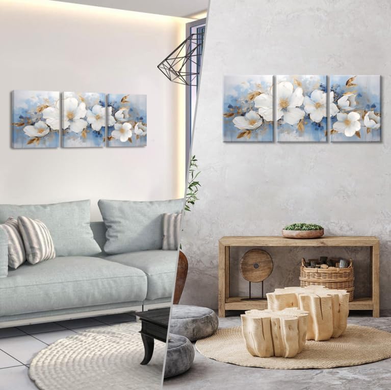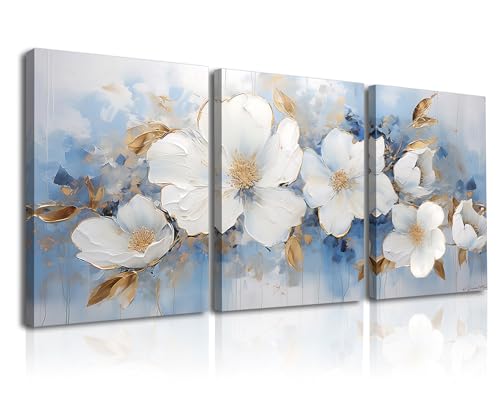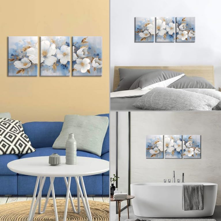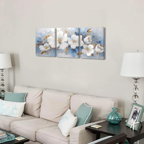 Piy Painting - باي باينتينغ لوحة فنية مطبوعة على شكل زهرة بيضاء، قماش فني رومانسي، اعمال فنية مطبوعة، صور جدارية لغرفة النوم وغرفة المعيشة والمقهى والولائم، 3 قطع 30 × 40 سم