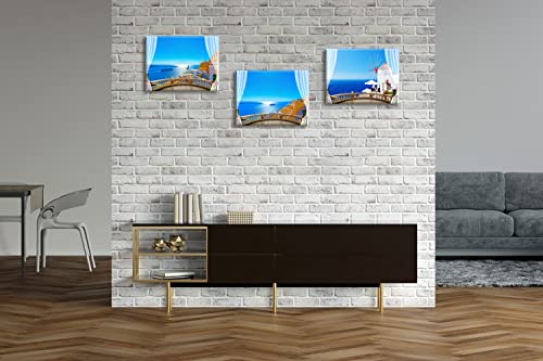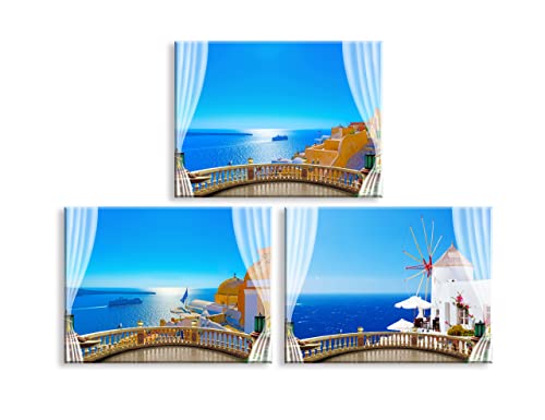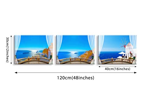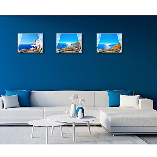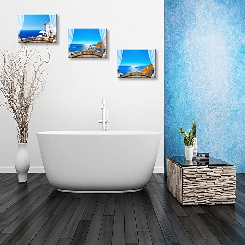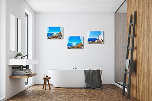 Piy Painting - مجموعة من 3 صور قماشية للبحر الأزرق، لوحة قماشية للمحيط الواسع، صور حائط لمناظر طبيعية عصرية للساحل، صورة قارب، ديكور حائط لغرفة النوم والحمام والمقهى، 40 × 30 سم من باي باينتينج