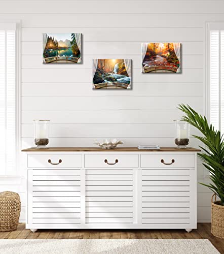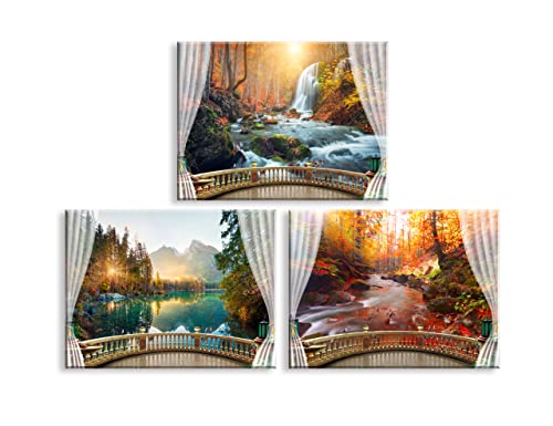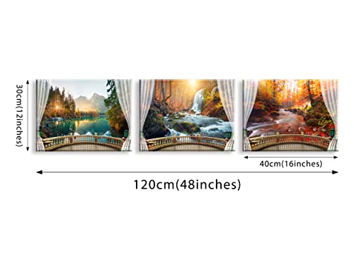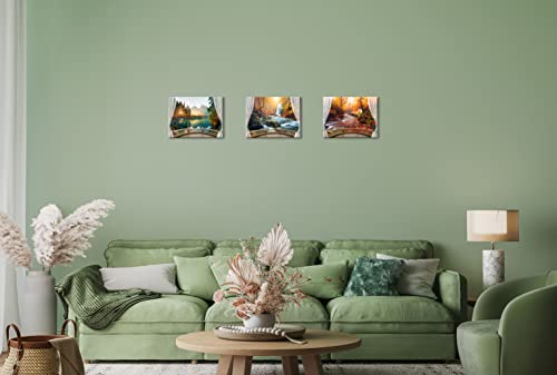 Piy Painting - مجموعة من 3 صور منظر طبيعي لغابة بحيرة وجبال شلال مطبوعة على قماش مناظر طبيعية حديثة لمنظر للخريف جدارية لغرفة المعيشة والحمام 40 × 30 سم باي باينتينج متعدد