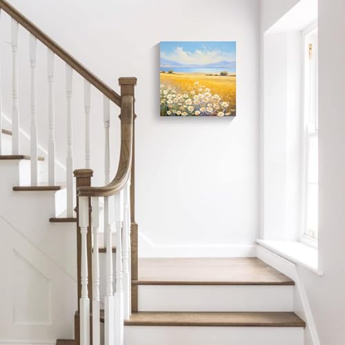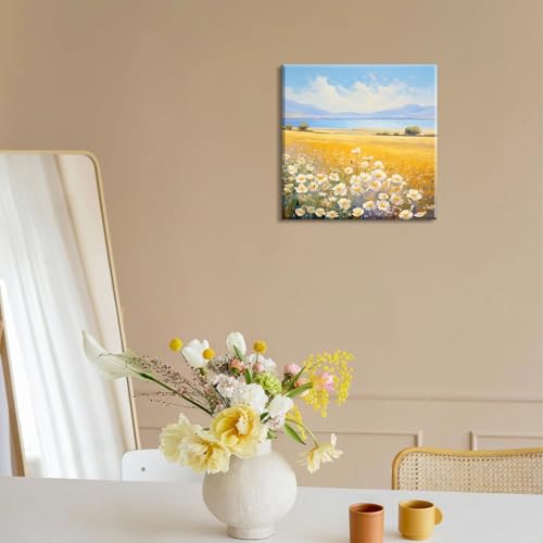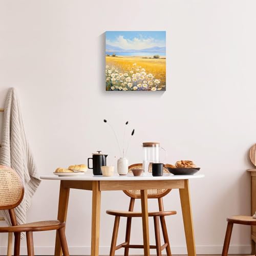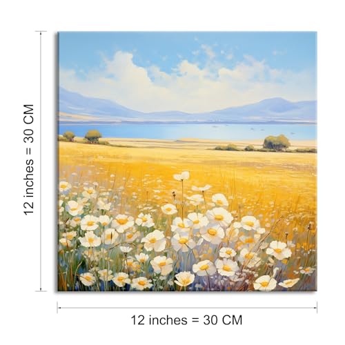 Piy Painting - باي باينتينغ لوحات قماشية بطباعة زهور بيضاء للمناظر الطبيعية على القماش مؤطرة للمطبخ وغرفة النوم اليوغا هدية عيد الميلاد 30 × سم