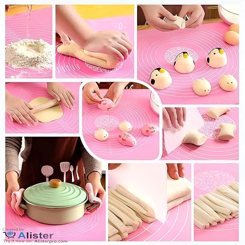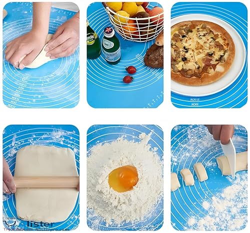 - بساط العجين المصنوع من السيليكون هو ملحق مطبخ متعدد الاستخدامات يجب أن يمتلكه كل خباز. استخدامه متعدد الوظائف، من لف العجين إلى تقديمه كسطح مقاوم للالتصاق، يجعله إضافة قيمة لمجموعة أدوات الخبز الخاصة بك.