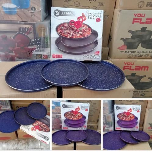 Generic - طقم صواني بيتزا 3 قطع بأحجام متعددة خامة متينة غير لاصقة لتحضير مثالي في كل مرة